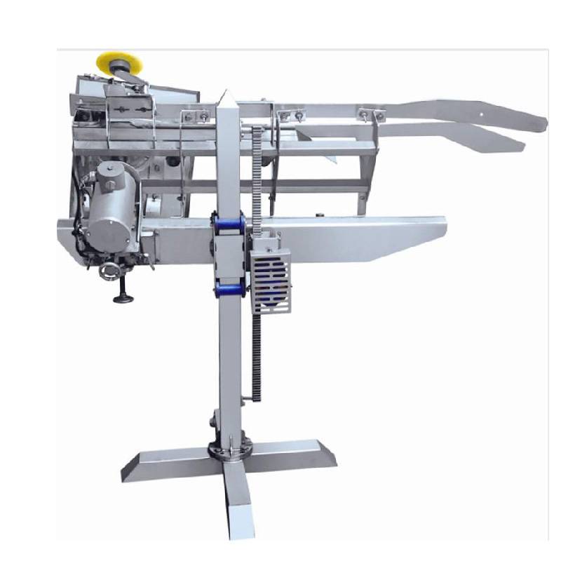 产品概述:本机适用于2.2kg-2.5kg的白羽肉鸡。该机器连接到肉鸡屠宰线。在屠宰线上,按照生产节奏,实现电晕后肉鸡的自动屠宰,机器可在电死后自动屠宰并放血。节省劳动力,降低成本和工人的劳动强度提高生产效率,深受用户好评。结构特点:肉鸡被击晕后,它通过引导杆的约束和引导沿着线移动。限制和引导,并通过叉子扶正,使肉鸡的头和颈部进入宰杀和放血的位置。此时,通过张紧机构将肉鸡的头部和颈部紧紧地拉开,并且通过切割器切开肉鸡的头部和颈部的对应位置,从而实现了对肉鸡的屠宰和放血的目的。主要技术参数:外形尺寸:1200 * 1100 * 1550mm设备总功率:1.85KW