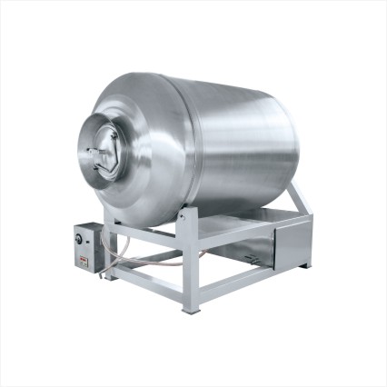 真空滚揉机适用于,肉制品加工,牛羊肉块,酸菜,泡菜腌制均匀拌料的优良搅拌机。真空滚揉机是在真空状态下,利用物理冲击原理,让物料在滚筒内上下翻动,相互撞击、摔打,从而达到按摩、腌渍作用。腌渍液被物料充分地吸收,增强物料的结合力及弹性,提高产品的口感及断面效果;可以增强保水性,增加出品率;可以改善产品的内部结构。整机采用不锈钢304制造,结构紧凑,滚筒两端均采用旋压式封帽结构,更大的增加滚筒内的摔打空间,使滚揉产品的效果均匀,噪音小,性能可靠,操作简便,使用效率更高。